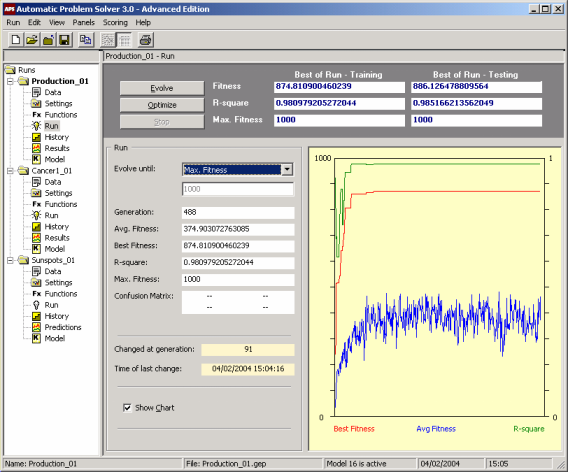 GeneXproTools uses the value of 1 by default. The fourth allows you to evolve models until the best fitness is equal to maximum fitness. In this case, the correct value of maximum fitness is automatically introduced by