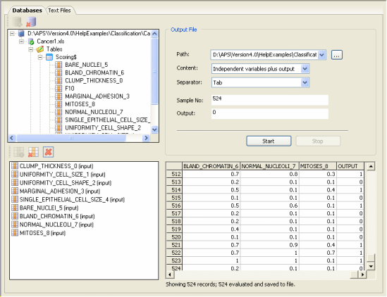 GeneXproTools saves the scoring results to a file, but for small datasets (up to 16 variables and 2000 samples), GeneXproTools